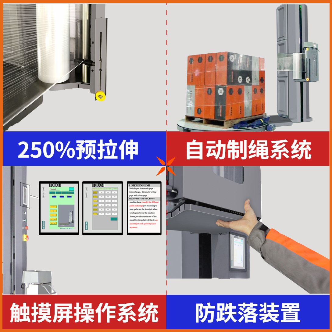b.自動(dòng)制繩系統(tǒng) 自動(dòng)制繩技術(shù)確保貨物不會(huì)在運(yùn)輸途中滑出托盤;